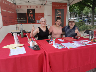 Dans le cadre de Reims Urban Nature 2023 organisé par la Ville de Reims, l'association Caminito de Tango a tenu son stand du vendredi 9 au dimanche 11 juin près de la Porte de Mars. Excellente occasion pour rencontrer des curieux et des personnes qui rêvaient de faire du tango argentin depuis longtemps.