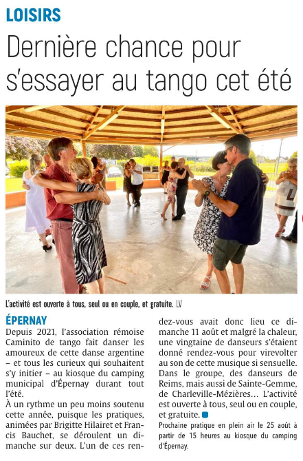 Cet été encore Caminito de Tango a organisé 4 milongas en plein air sous le magnifique kiosque du camping *** d'Epernay, en Champagne, les 14 et 28 juillet et les 11 et 25 août 2024. J'ai été gracieusement invitée en tant que DJ.